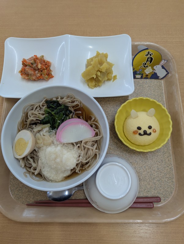今日は中秋の名月ということで、昼食に「お月見献立」を提供しました。